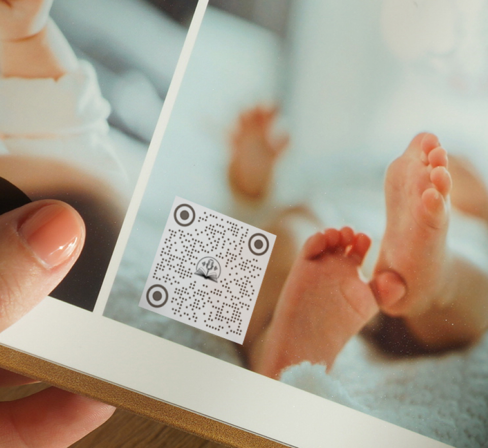 Each page includes a scannable QR code that plays the story behind the image. Scan with your phone to instantly hear the memory.